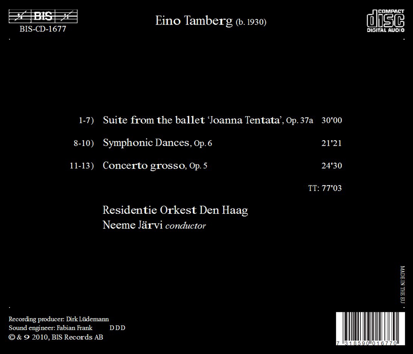Bornkamp, Arno / Colbers, Hans / Cooke, Dorian / Eijsackers, Hans / Järvi, Neeme / Loo, Martine van der / Loot, Gertjan / The Hague Residentie Orkest