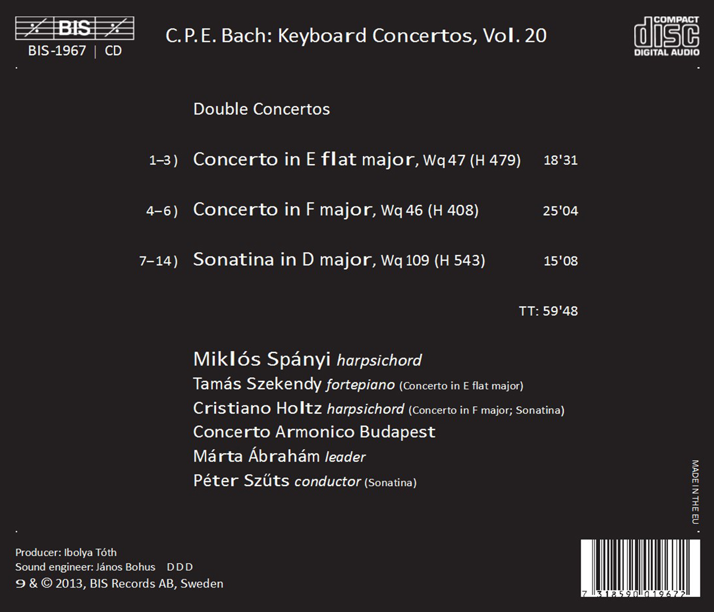 Abraham, Marta / Concerto Armonico Budapest / Holtz, Cristiano / Spányi, Miklós / Szekendy, Tamas / Szuts, Peter