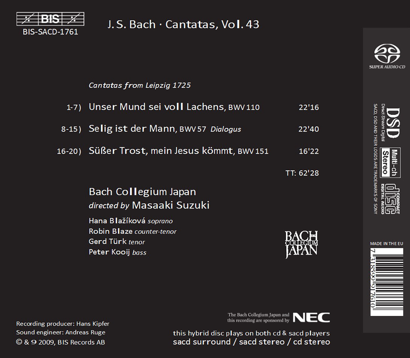 Bach Collegium Japan / Bach Collegium Japan Chorus / Blaze, Robin / Blažíková, Hana / Kooij, Peter / Suzuki, Masaaki / Türk, Gerd