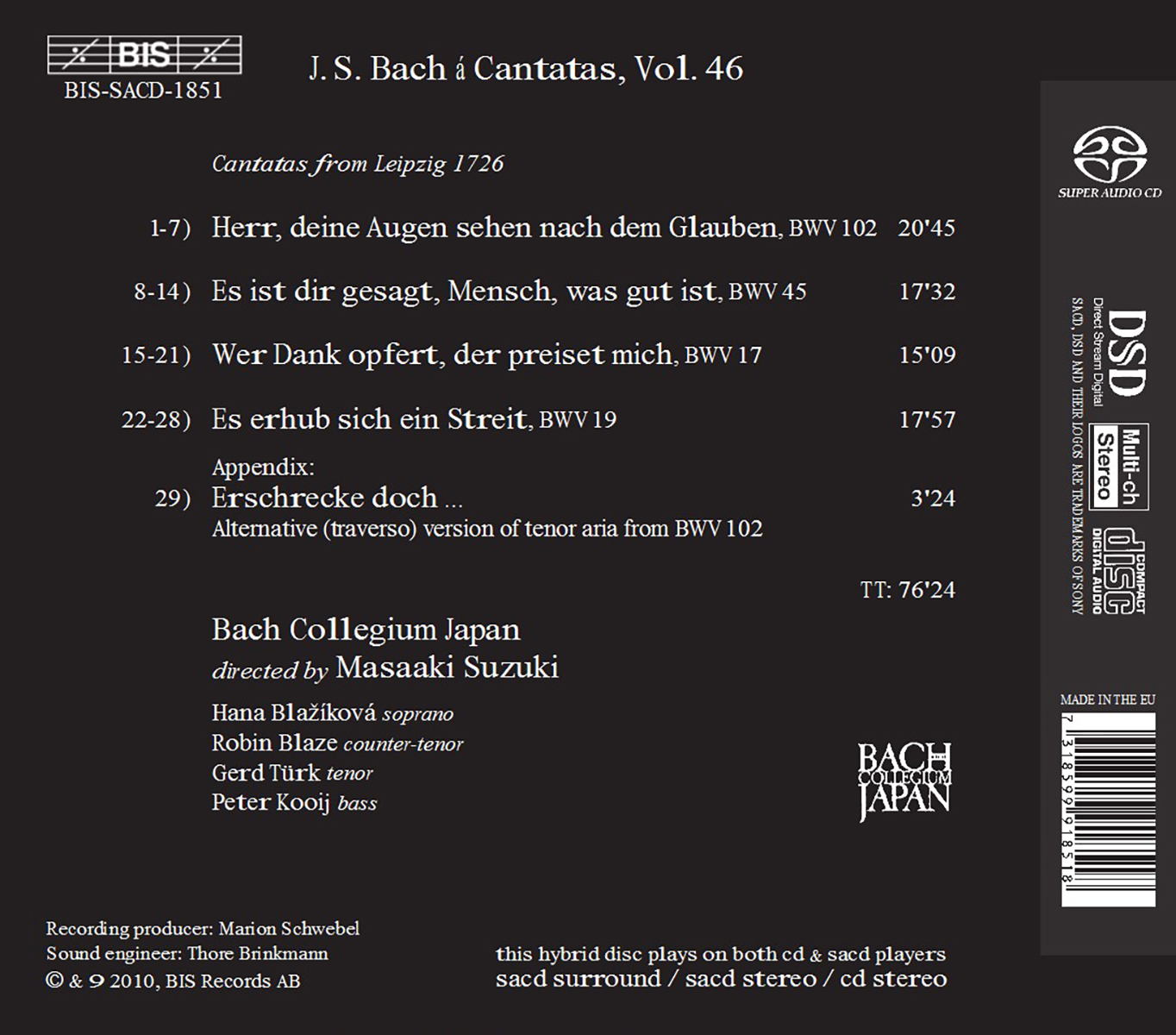 Bach Collegium Japan / Bach Collegium Japan Chorus / Blaze, Robin / Blažíková, Hana / Kooij, Peter / Suzuki, Masaaki / Türk, Gerd