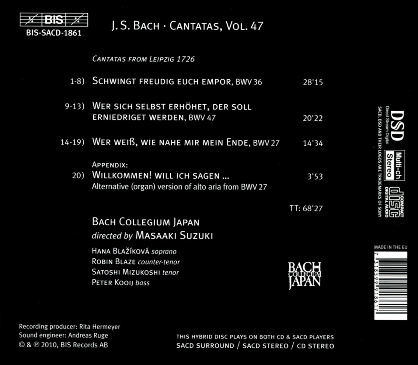 Bach Collegium Japan / Bach Collegium Japan Chorus / Blaze, Robin / Blažíková, Hana / Kooij, Peter / Mizukoshi, Satoshi / Suzuki, Masaaki