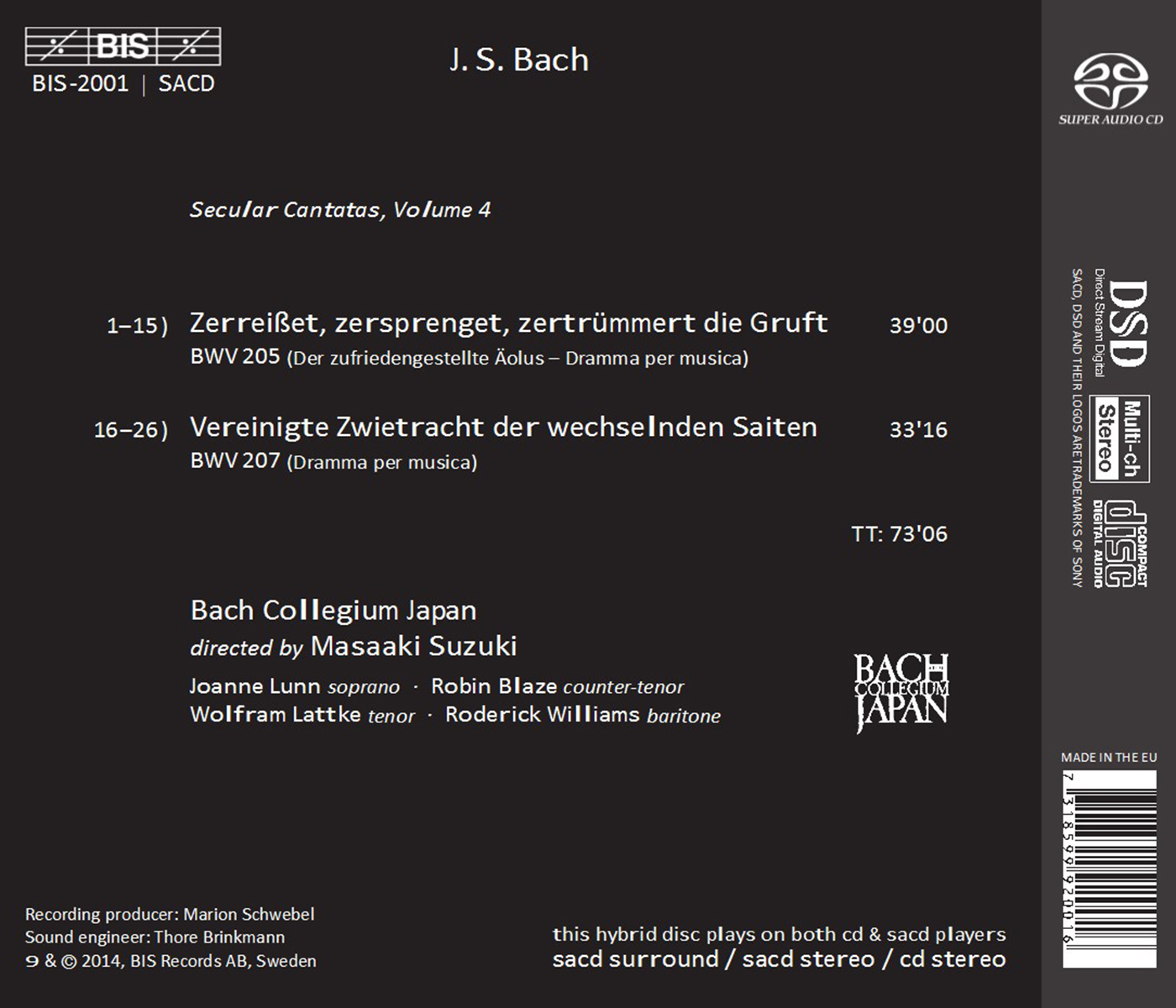 Bach Collegium Japan / Bach Collegium Japan Chorus / Blaze, Robin / Lattke, Wolfram / Lunn, Joanne / Suzuki, Masaaki / Williams, Roderick