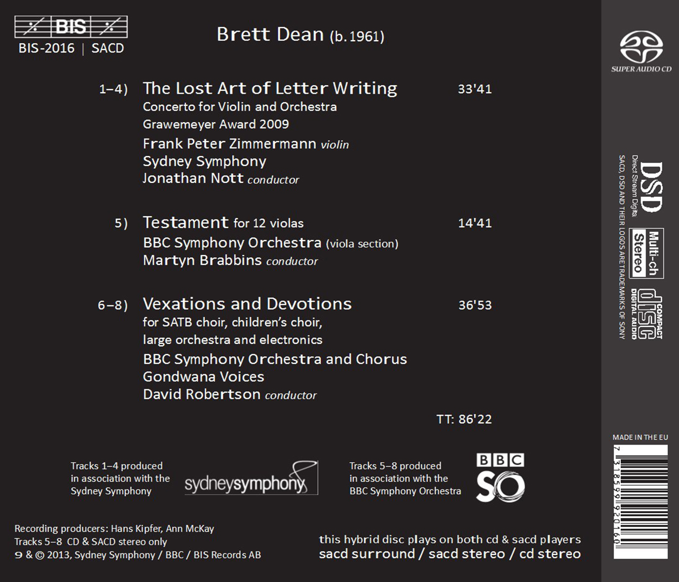 Bbc Symphony Chorus / BBC Symphony Orchestra / Brabbins, Martyn / Gondwana Voices / Nott, Jonathan / Robertson, David / Sydney Symphony Orchestra / Zimmermann, Frank Peter