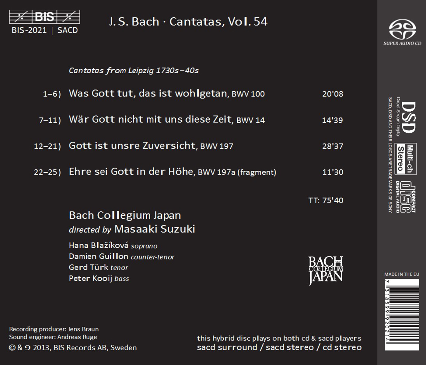 Bach Collegium Japan / Blažíková, Hana / Guillon, Damien / Kooij, Peter / Suzuki, Masaaki / Türk, Gerd