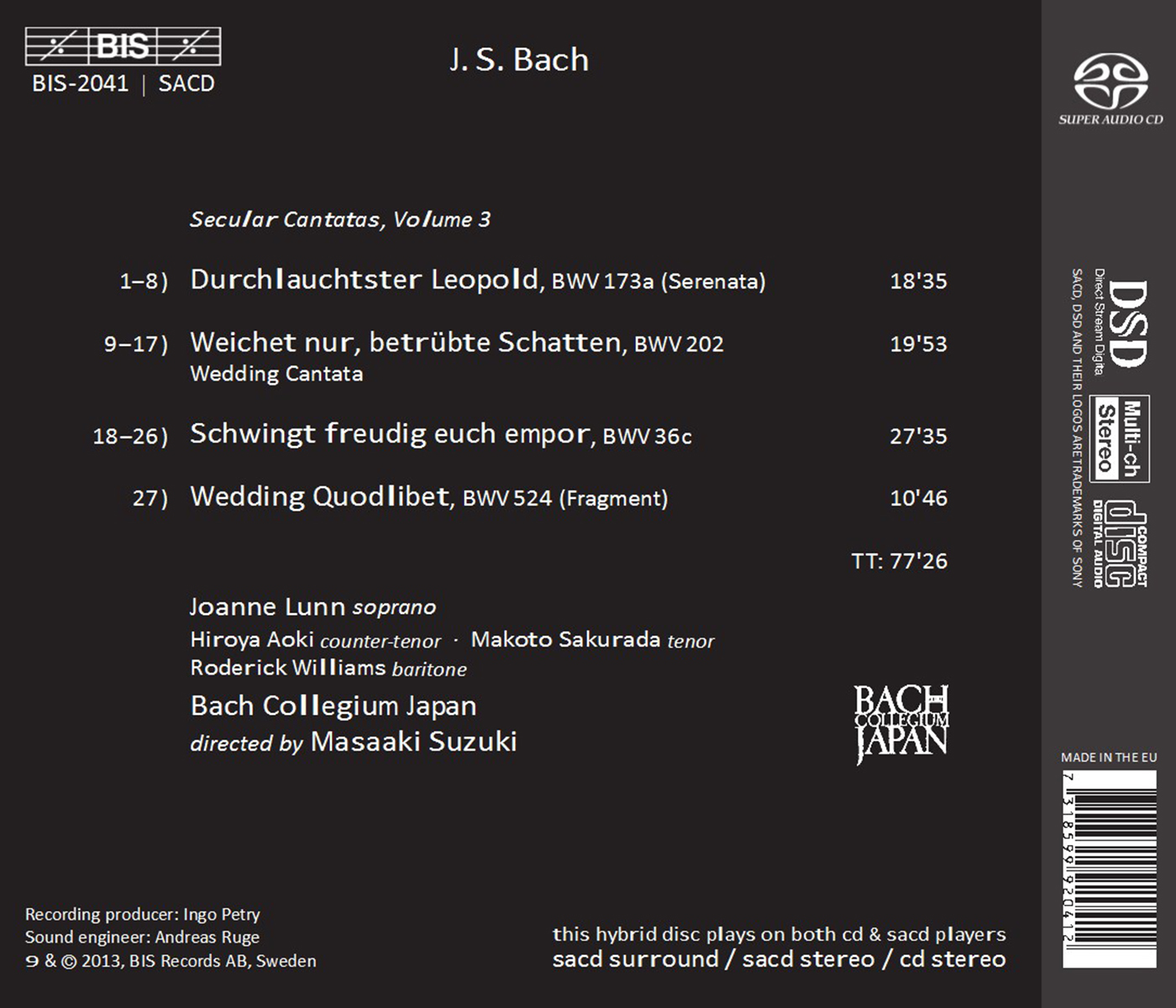 Aoki, Hiroya / Bach Collegium Japan / Bach Collegium Japan Chorus / Lunn, Joanne / Sakurada, Makoto / Suzuki, Masaaki / Williams, Roderick