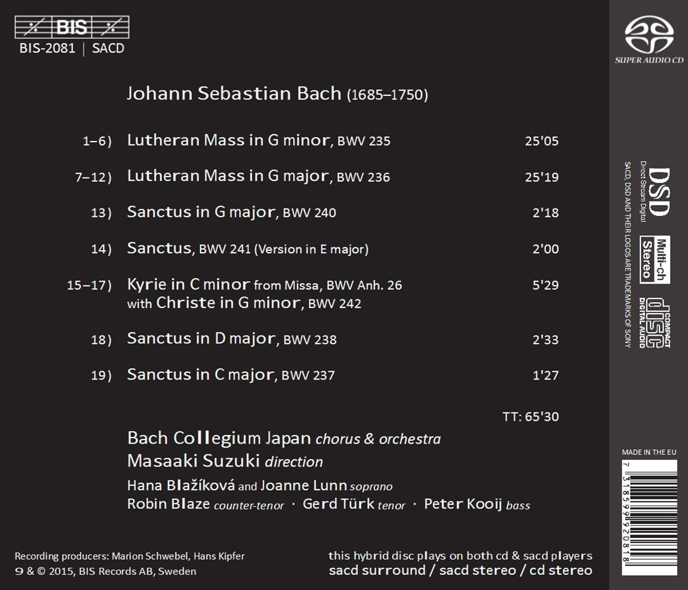 Bach Collegium Japan / Bach Collegium Japan Chorus / Blaze, Robin / Blažíková, Hana / Kooij, Peter / Lunn, Joanne / Suzuki, Masaaki / Türk, Gerd