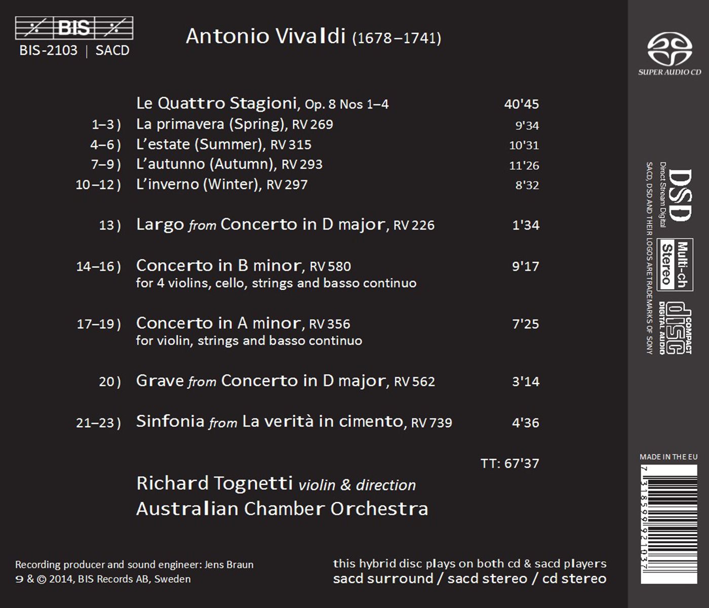 Australian Chamber Orchestra / Rathbone, Helena / See, Ike / Tognetti, Richard / Vänskä, Satu / Valve, Timo-Veikko