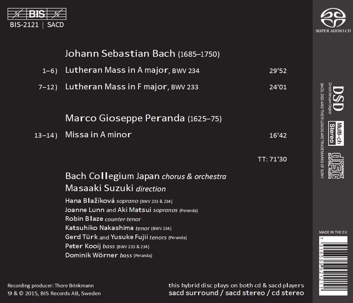Bach Collegium Japan / Bach Collegium Japan Chorus / Blaze, Robin / Blažíková, Hana / Kooij, Peter / Suzuki, Masaaki