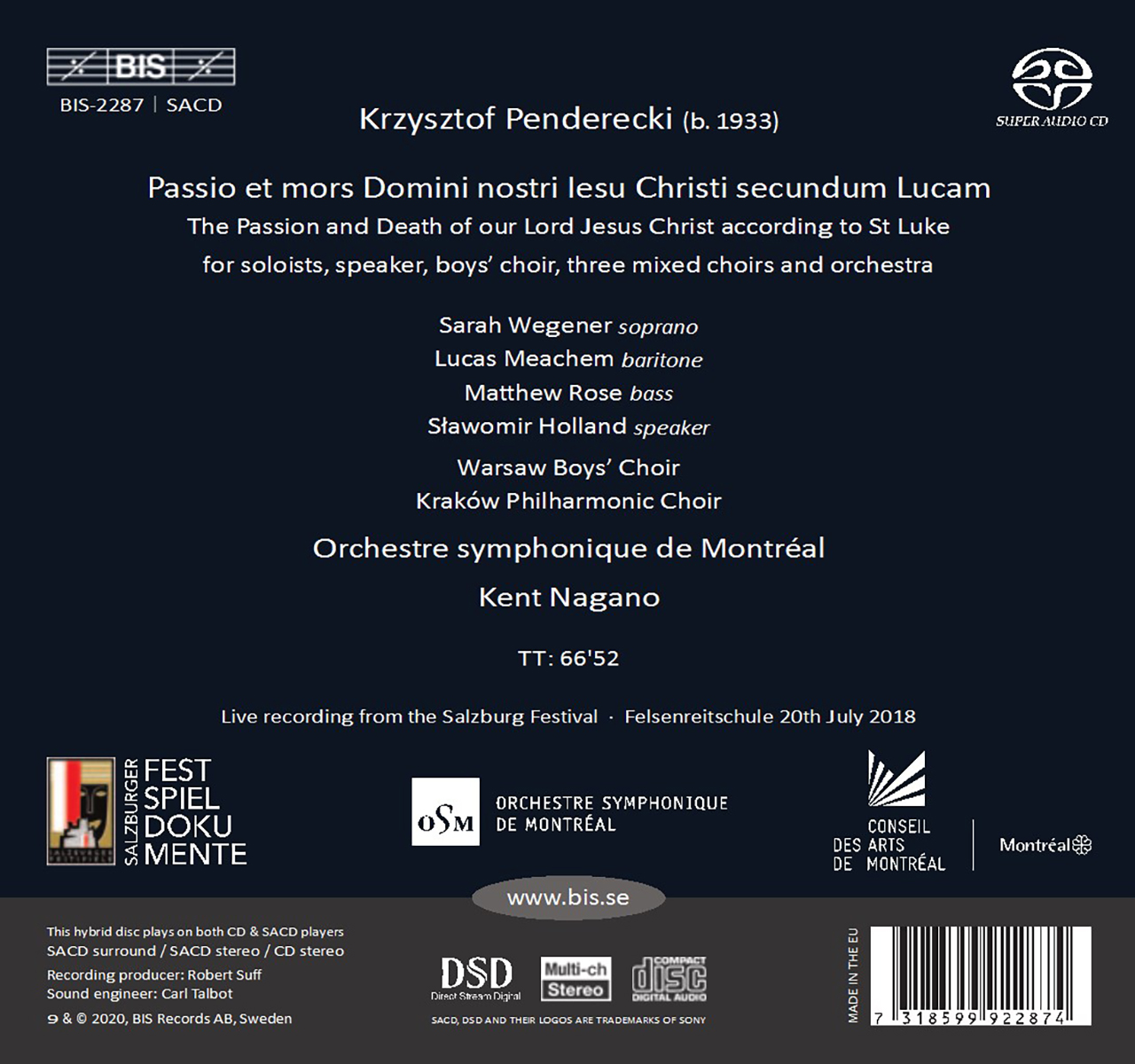 Cracow Philharmonic Chorus / Holland, Sławomir / Meachem, Lucas / Orchestre symphonique de Montréal / Nagano, Kent / Rose, Matthew / Warsaw Boys Choir / Wegener, Sarah
