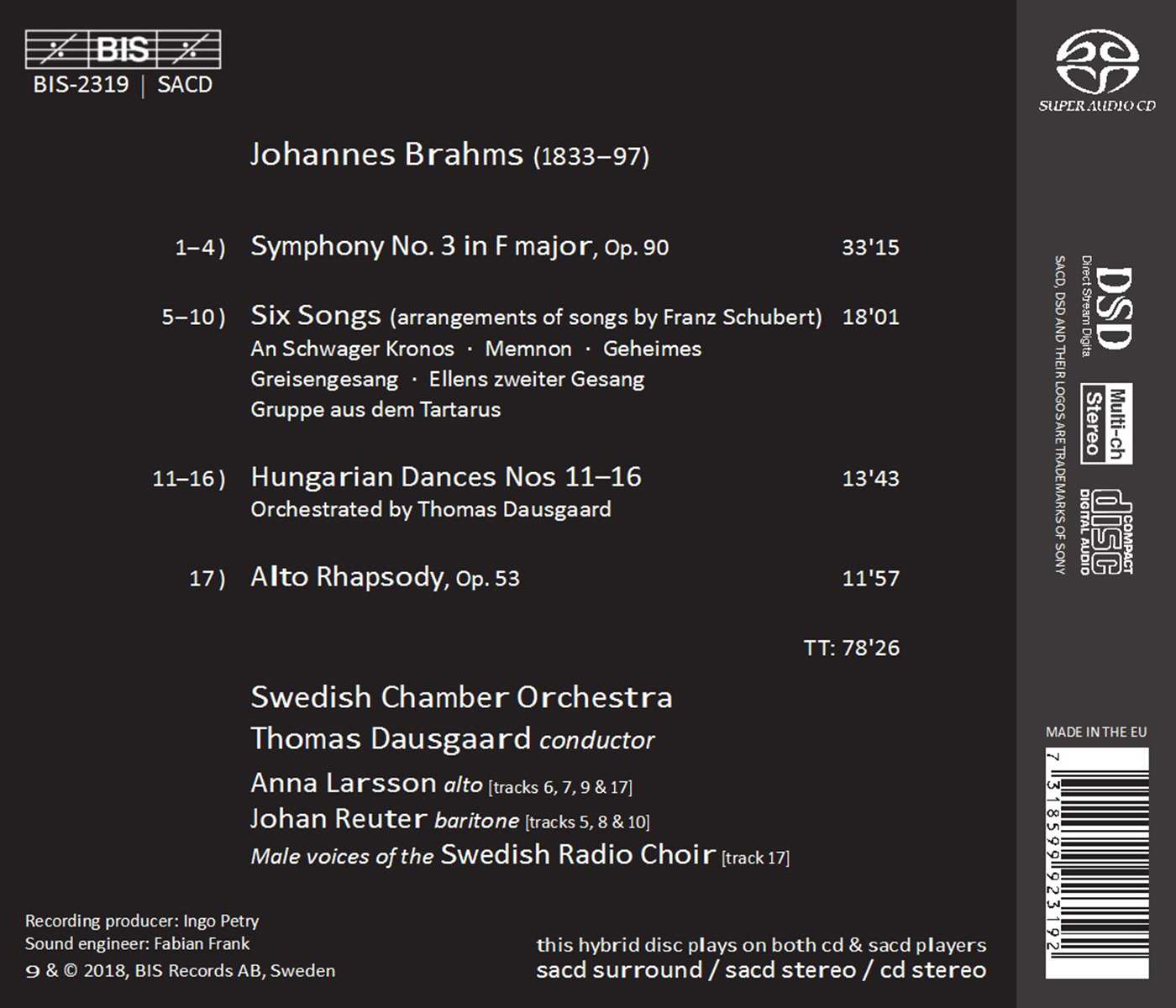 Dausgaard, Thomas / Larsson, Anna / Reuter, Johan / Swedish Chamber Orchestra / Swedish Radio Choir