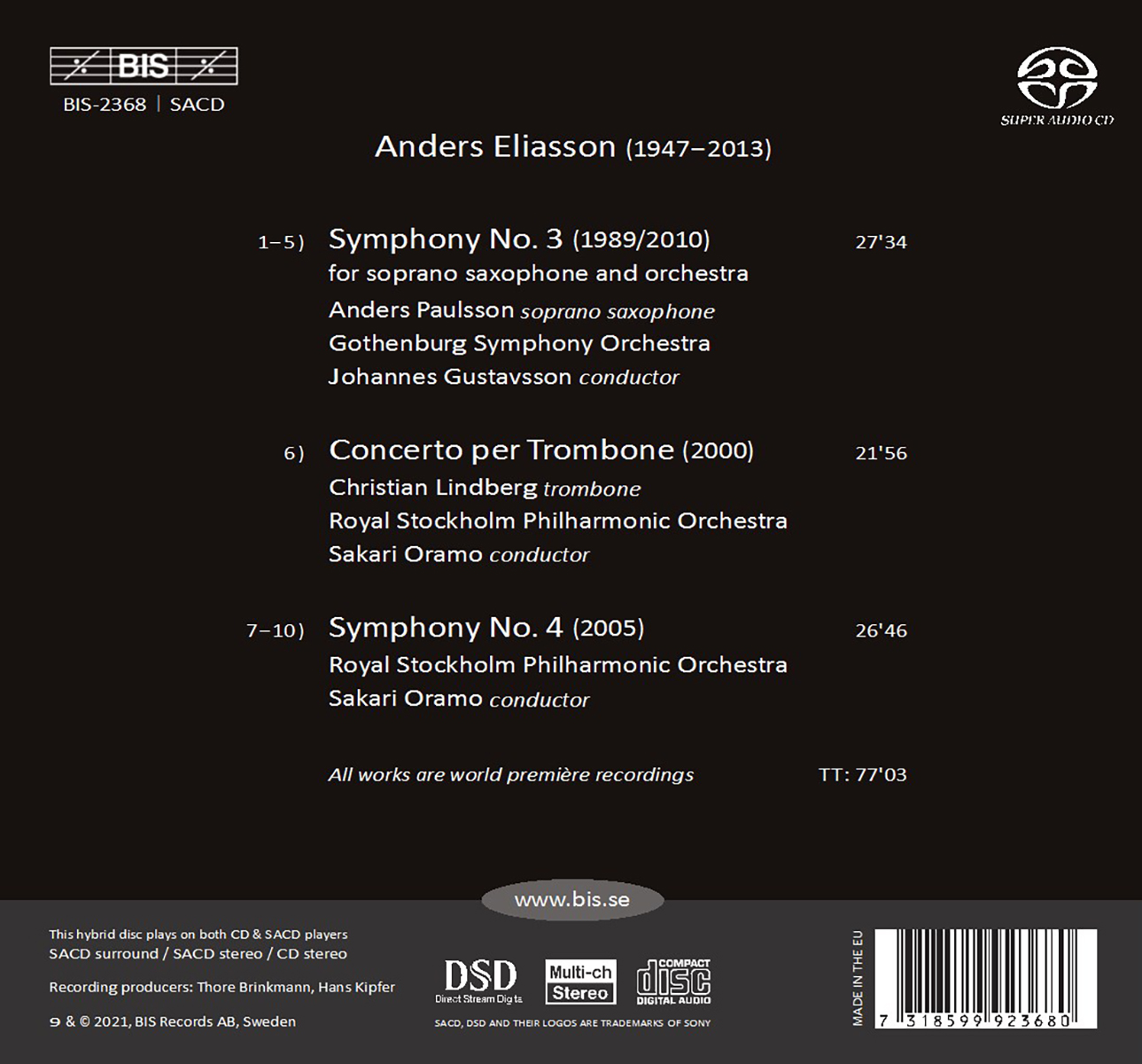 Gothenburg Symphony Orchestra / Gustavsson, Johannes / Lindberg, Christian / Oramo, Sakari / Paulsson, Anders / Royal Stockholm Philharmonic Orchestra