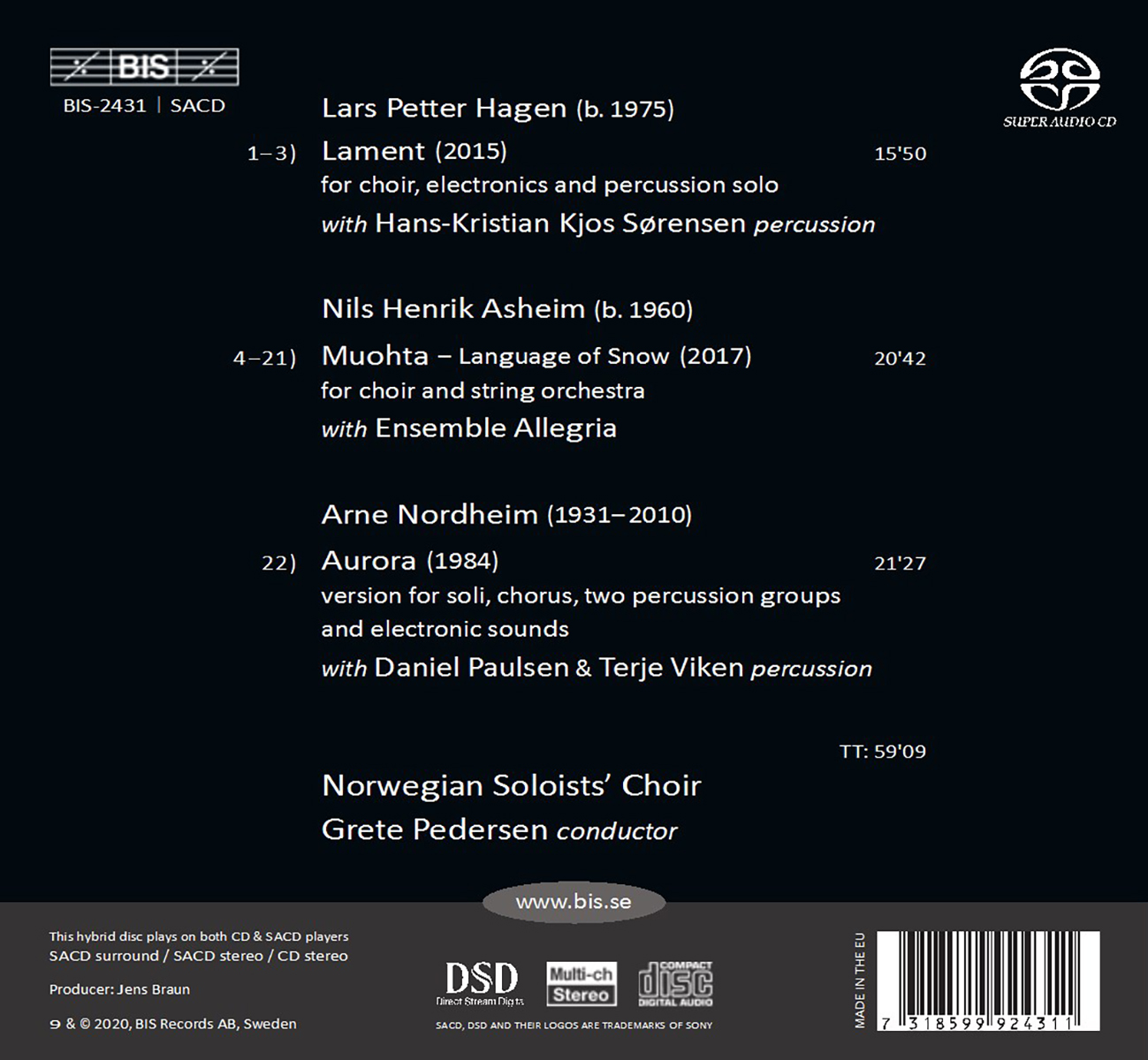 Ensemble Allegria / Hagen, Lars Petter / Kjos Sørensen, Hans-Kristian / Nordheim, Arne / Norwegian Soloists' Choir / Paulsen, Daniel / Pedersen, Grete / Viken, Terje