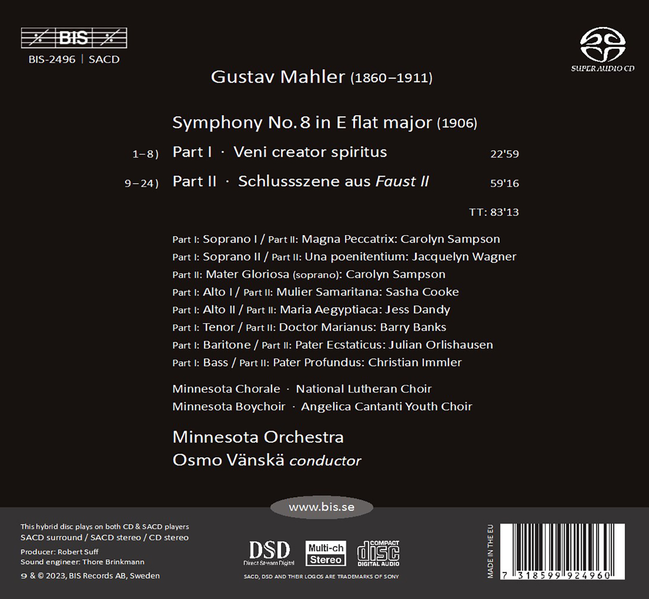 Angelica Cantanti Youth Choir / Banks, Barry / Cooke, Sasha / Dandy, Jess / Immler, Christian / Minnesota Boychoir / Minnesota Chorale / Minnesota Orchestra / National Lutheran Choir / Orlishausen, Julian / Sampson, Carolyn / Vänskä, Osmo / Wagner, Jacquelyn