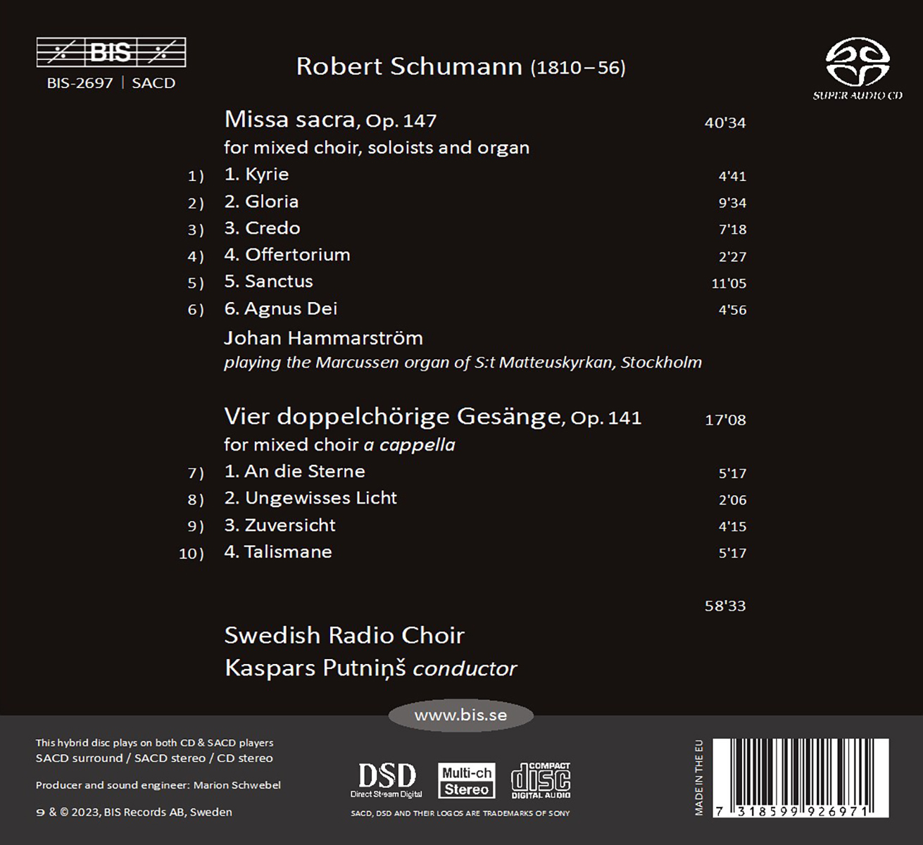 Brissman, Lars Johansson / Carlioth, Lisa / Carlsson, Mats / Hammarström, Johan / Lorenzen, Kathrin / Nordin, Jennie Eriksson / Putniņš, Kaspars / Swedish Radio Choir