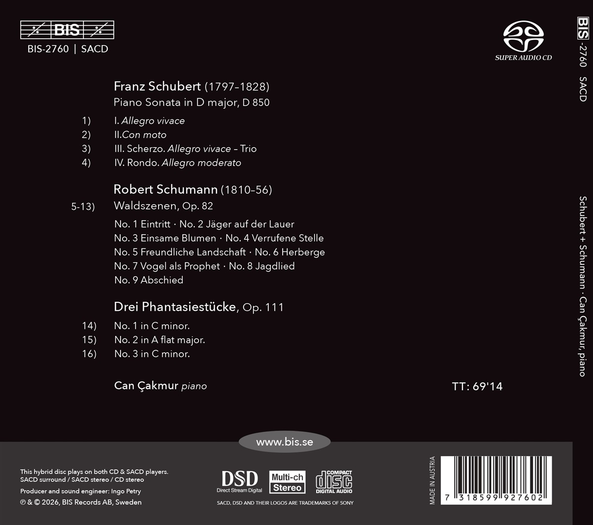Die fortlaufende „Schubert +“-Reihe des Pianisten Can Çakmur hat einen außergewöhnlichen Schubertianer zum Vorschein gebracht. In ihrer sechsten Ausgabe stellt die Reihe Werke von Franz Schubert denen von Komponisten gegenüber, die er inspiriert hat. Das aktuelle Programm rückt Robert Schumann in den Mittelpunkt. Schumann schätzte Schubert sehr und war einer der ersten, der ihn als einen der visionärsten Komponisten aller Zeiten erkannte, was allein schon diese Kombination gerechtfertigt hätte. Çakmur geht jedoch noch tiefer und nutzt das Programm als Ausgangspunkt für eine philosophische Diskussion über den Naturalismus in der deutschen Romantik. Auf dem Programm steht Schuberts brillante Sonate in D-Dur, D 850, die 1825 im Kurort Bad Gastein komponiert wurde. Die Komposition inmitten der Alpenlandschaft hat wahrscheinlich seine Fantasie beflügelt und spiegelt sich in den Themen Müller, Jäger, Wälder und Berge wider, die in seinen Liedern vorherrschen. Robert Schumanns „Waldszenen” knüpfen an diesen Inspirationsstrang an. In diesen neun Miniaturen kehrt Schumann zu der fröhlichen und schlichten Lyrik zurück, die an frühe Werke wie „Kinderszenen” erinnert. Das Programm endet mit Schumanns „Drei Phantasiestücke“, Op. 111, die laut Çakmur aufgrund der verblüffenden Ähnlichkeit zwischen dem zweiten Stück und dem langsamen Satz von Schuberts Sonate aufgenommen wurden. Dieses Programm verspricht eine fesselnde Reise ins Herz der deutschen Romantik durch die Werke zweier ihrer wichtigsten Vertreter, geführt von Can Çakmur.