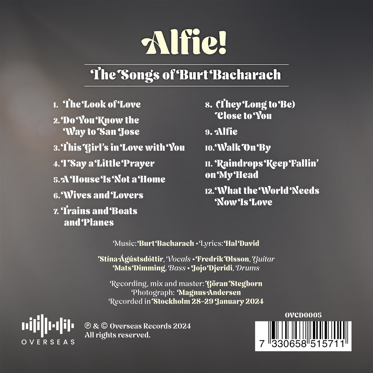 Die Jazzgruppe Alfie! lädt auf eine musikalische Reise durch die zeitlosen Melodien von Burt Bacharach ein. Mit ihrem Debütalbum „The Songs of Burt Bacharach“ wechselt die Band von lokalen Bühnen ins Studio, um eine leidenschaftliche Hommage an einen der bekanntesten Komponisten der Popmusik zu liefern. Nachdem Alfie! das Publikum in der Region Stockholm mit ihren brillanten Interpretationen amerikanischer Klassiker verzaubert hat, hat die Band nun ein ganzes Album geschaffen, das Burt Bacharachs Musik gewidmet ist. Der Song „The Look of Love“ brachte die Idee ins Rollen und schon bald bestand das Repertoire nur noch aus den zeitlosen Melodien von Bacharach. Burt Bacharach ist einer der beliebtesten Komponisten: Mit seinen ausdrucksstarken Melodien und originellen harmonischen Wendungen prägte er ab den 1960er Jahren eine ganze Ära. Seine Musik hatte und hat viele Interpreten: von Dionne Warwick bis zu Frank Sinatra. Alfie! erkundet Bacharach aus einer Jazz-Perspektive und erarbeitet seine Melodien und die Texte von Hal David liebevoll. Wir hören Kultlieder wie „Raindrops Keep Fallin' on My Head“, „Walk on By“, „Close to You“ und viele andere.