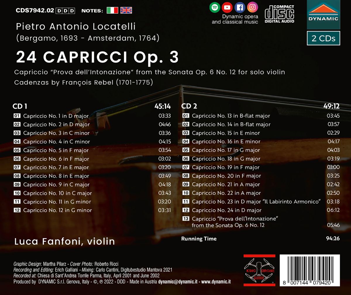 Pietro Locatelli war einer der berühmtesten Violin-Komponisten des 18. Jahrhunderts. Der Höhepunkt seines Schaffens war „L'arte del violino“, ein Zyklus aus zwölf Konzerten für Violine, Streicher und Continuo, von denen jedes zwei umfangreiche Kadenzen enthält, die Locatelli „Capricci“ nannte. Es sind Bravourstücke, die auch unabhängig von ihrem Konzertkontext funktionieren. Mit ihren komplexen Akkord- und Arpeggio-Techniken, Doppelgriffen und Saitenüberkreuzungen gehören sie ohne Übertreibung zu den anspruchsvollsten Violinwerken, die jemals vor Paganini komponiert wurden. Und es ist mehr als wahrscheinlich, dass sich der Violinista del Diavolo davon zu seinen eigenen Capricci inspirieren ließ.