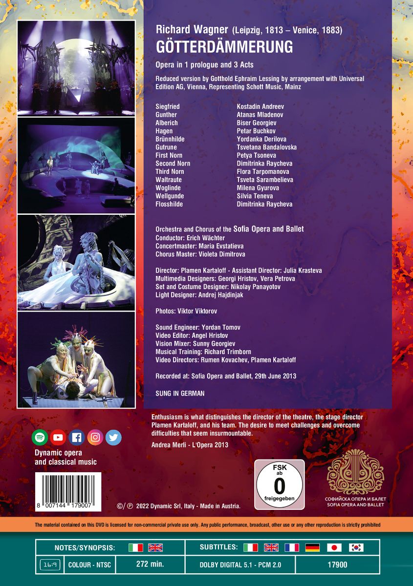 Als Regisseur Plamen Kartaloff Wagners „Das Rheingold“ 2010 auf die Bühne des Nationaltheaters in Sofia brachte, war dies eine echte Sensation: Hier entstand ein „Ring des Nibelungen“, fernab von den Epizentren Wagnerschen Schaffens, der musikalisch und inszenatorisch vollends überzeugen konnte. Vier Jahre später, im Mai 2013 war es vollbracht: Für die „Götterdämmerung“ engagierte man den erfahrenen deutschen Dirigenten Erich Wächter, das Cast mit den vorzüglichen Sängerinnen und Sängern der Oper in Sofia leistete noch ein letztes Mal Außergewöhnliches.