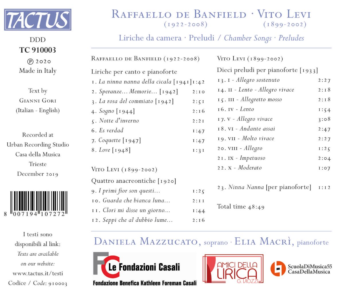 Banfield / Levi: Kammerlieder / Präludien