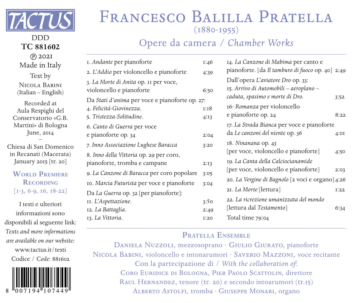 Pratella: Opere da Camera