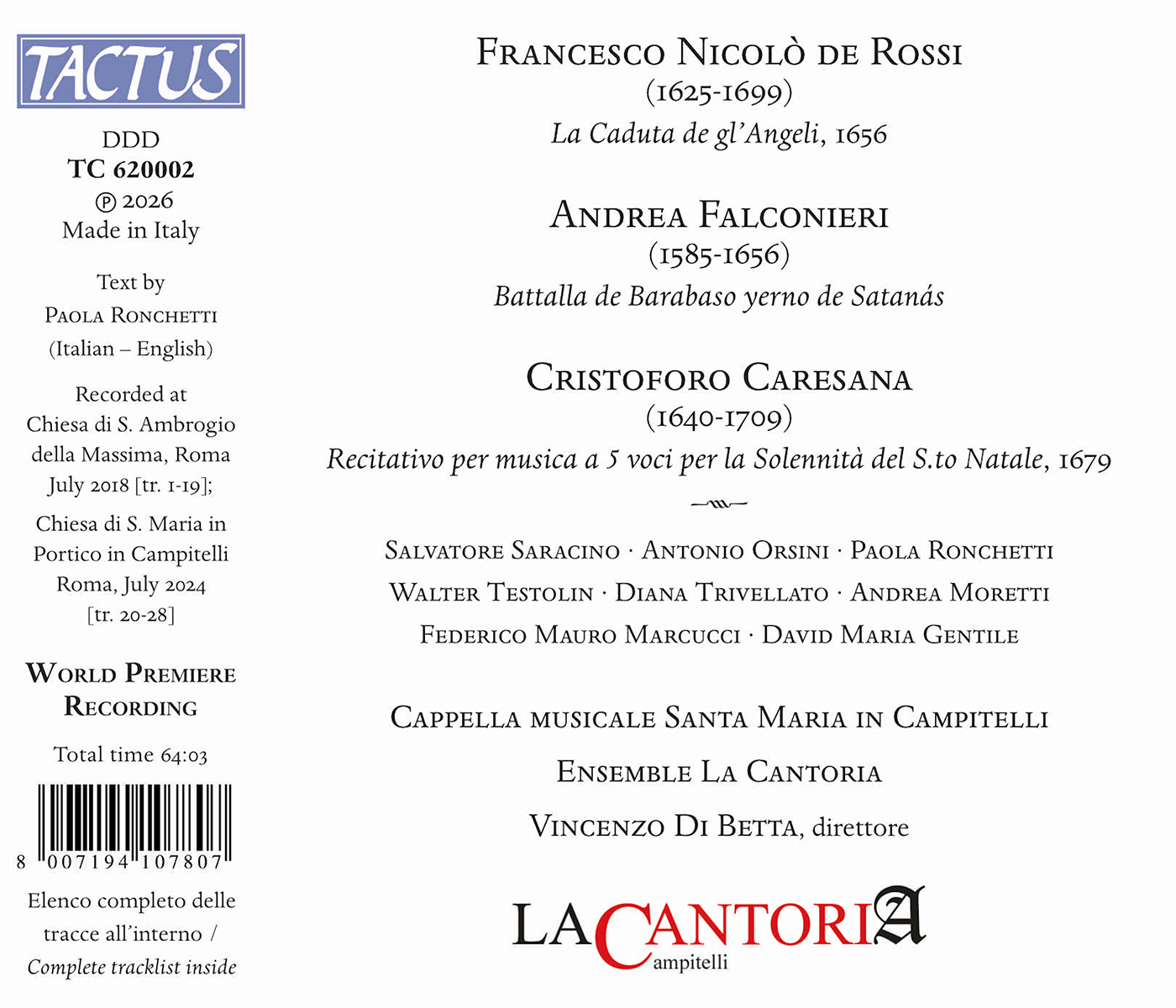 Betta, Vincenzo di / Cappella Musicale di Santa Maria in Campitelli di Roma / Ensemble La Cantoria / Gentile, David Maria / Marcucci, Federico Mauro / Moretti, Andrea / Orsini, Antonio / Ronchetti, Paola / Saracino, Salvatore / Testolin, Walter / Trivellato, Diana