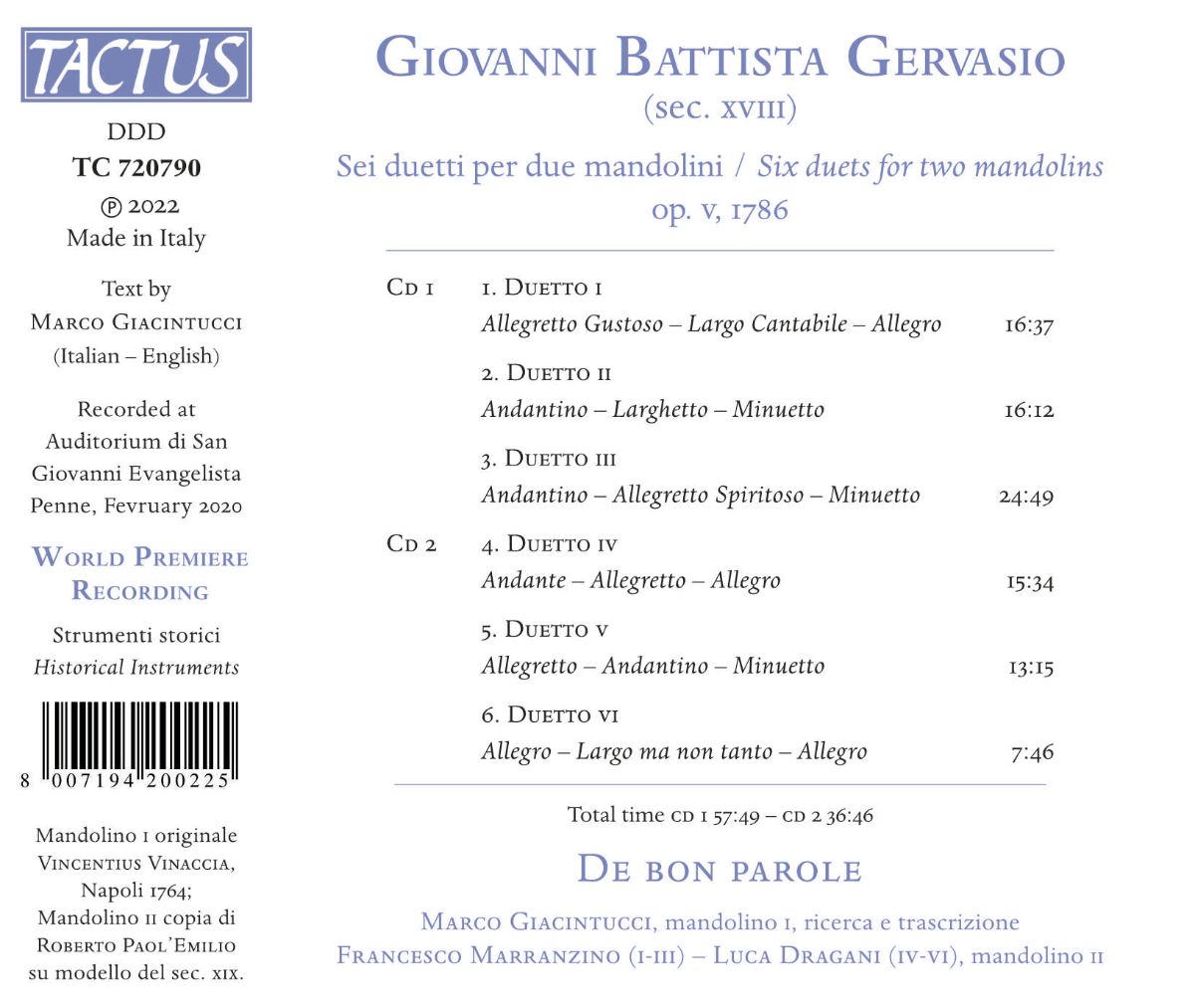Gervasio: Sechs Duette für zwei Mandolinen