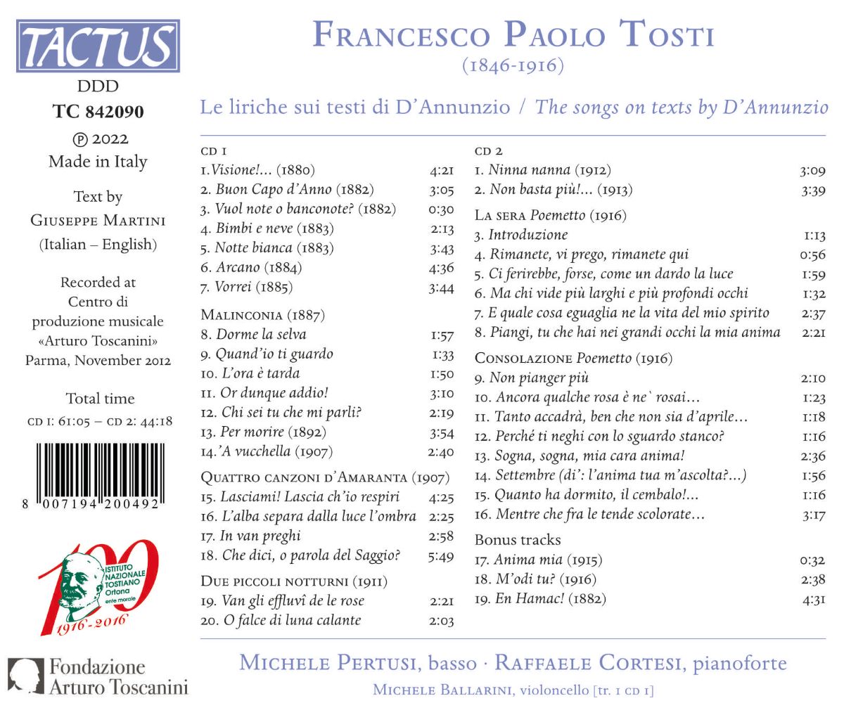 Tosti: Le liriche sui testi di D'Annunzio