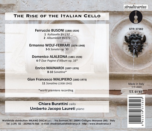 „Ausgehend von unserer gemeinsamen Leidenschaft für die italienische Instrumentalmusik des frühen 20. Jahrhunderts“, erklären Chiara Burattini und Umberto Jacopo Laureti, „haben wir ein Bild rund um die beiden Schlüsselfiguren der damaligen Welt des Klaviers (Busoni) und des Cellos (Mainardi) zusammengestellt. Von den „Kultaselle-Variationen“ und Ferruccio Busonis seraphischem „Albumblatt“ sind wir über die Jugendstil-Zeichnungen der Sonate von Ermanno Wolf-Ferrari und den beiden Albumblätter von Domenico Alaleona zu den Sonatinen von Gian Francesco Malipiero und Enrico Mainardi gelangt.“