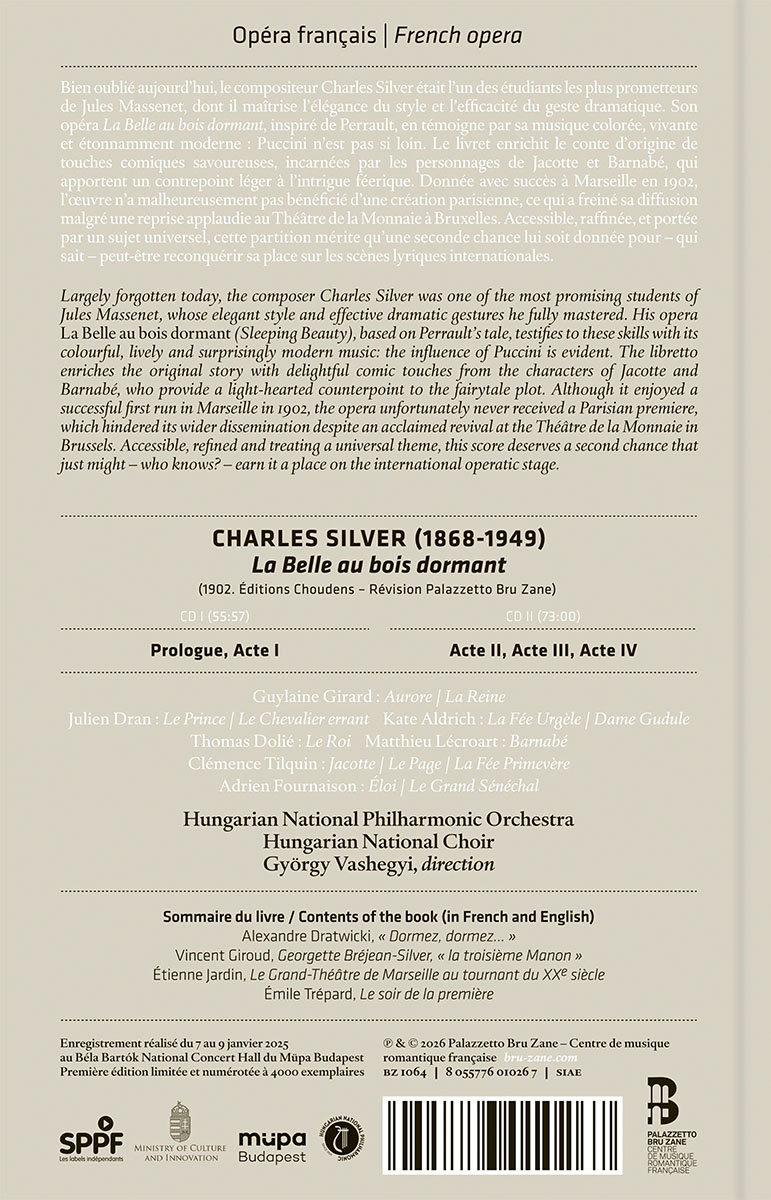Heute weitgehend vergessen, war der Komponist Charles Silver einer der vielversprechendsten Schüler Jules Massenets, dessen eleganten Stil und wirkungsvolle dramatische Gestik er vollkommen beherrschte. Seine Oper La Belle au bois dormant (Dornröschen), nach dem Märchen von Perrault, zeugt von diesen Fähigkeiten mit ihrer farbenreichen, lebendigen und überraschend modernen Musik; der Einfluss Puccinis ist deutlich spürbar.
