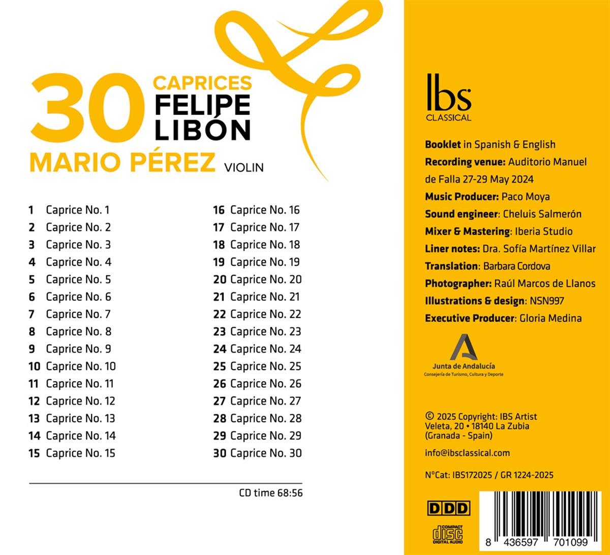 Der Violinist Mario Pérez präsentiert die erste vollständige Aufnahme der 30 Capricen von Felipe Libón (1775–1838). Dieses außergewöhnliche Projekt, aufgenommen im Auditorio Manuel de Falla und produziert von Paco Moya, ist ein brillantes Beispiel für künstlerische Forschung durch Aufführung – ein Dialog zwischen Vergangenheit und Gegenwart, der einen der faszinierendsten, aber dennoch übersehenen Violinisten Spaniens wieder in das Repertoire zurückbringt. Libón, ein Schüler von Giovanni Battista Viotti, wurde in Cádiz in eine französische Familie geboren und entwickelte sich zu einem der raffiniertesten Violinisten seiner Generation. Er war an den Höfen von Lissabon, Madrid und Paris tätig und wurde für seine Eleganz, Präzision und ausdrucksstarke Wärme bewundert. Libón spielte auf einer Stradivari-Geige und war ein Pionier in der Verwendung des modernen Tourte-Bogens. Er verband die Anmut des klassischen Stils mit einer technischen Brillanz, die Paganini vorwegnahm. Mit intellektueller Strenge und musikalischer Sensibilität lässt Mario Pérez – stellvertretender Konzertmeister des Spanischen Nationalorchesters und Mitglied des Trío Musicalis – Libóns vergessenes Meisterwerk wieder aufleben. Er spielt seine Andrea Castagneri (1696–1747) Violine, deren voller und strahlender Klang den Zuhörer in die Klangwelt des frühen 19. Jahrhunderts entführt. Jede der dreißig Capricen konzentriert sich auf einen bestimmten technischen oder expressiven Aspekt und bildet so ein vollständiges und lebendiges Kompendium der Violintechnik und -kunst. Wie die Musikwissenschaftlerin Dr. Sofía Martínez Villar in ihrem Begleittext schreibt: ‚Diese Aufnahme bietet nicht nur eine außergewöhnliche Interpretation, sondern ermöglicht es uns auch, einen Violinisten der Vergangenheit durch einen Violinisten der Gegenwart wiederzuentdecken.‘