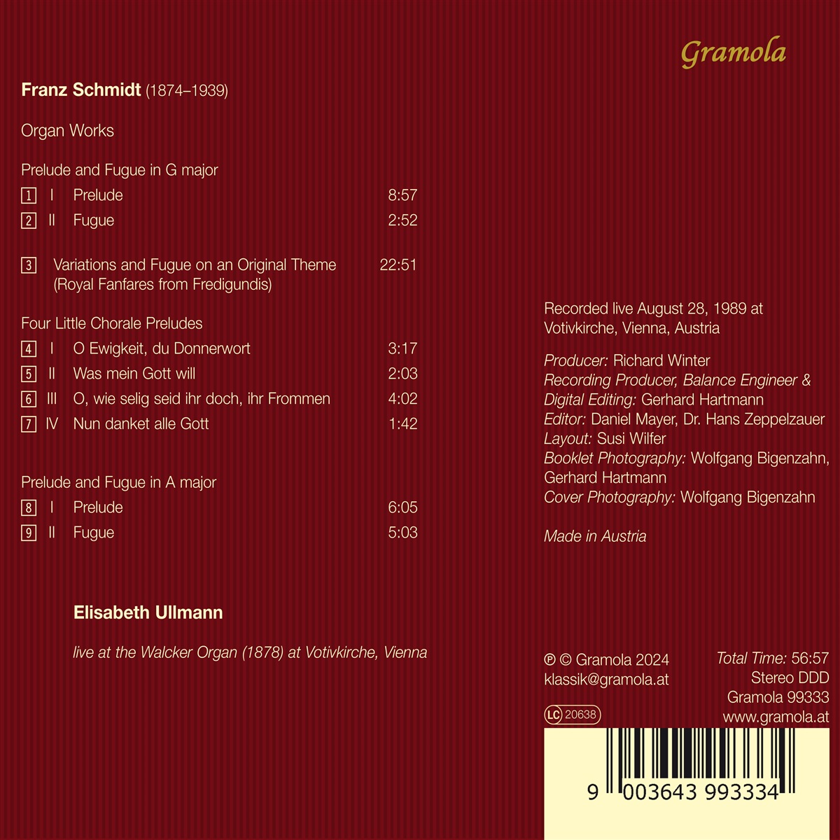 Franz Schmidt hatte bereits Anfang der 1920er Jahre mehrere groß angelegte Orgelwerke komponiert, denen kleinere Werke wie „Vier kleine Präludien und Fugen“ folgten. Das Präludium Nr. 3 in G-Dur entwickelt sich in einem ruhigen, heiteren Marschsatz, auf das Trio mit Solokantilene folgt der erste Teil da capo. Die dreiteilige Fuge mit obligatem Pedal erinnert an Johann Sebastian Bachs technisch anspruchsvolle „Sonaten für zwei Klaviere und Pedal“ BWV 525–530. Variationen und Fuge über ein eigenes Thema (Königliche Fanfaren aus Fredigundis) ist Franz Schmidts erstes Werk für Solo-Orgel. Der Zyklus Vier kleine Choralvorspiele über Melodien bekannter lutherischer Kirchenlieder wurde 1926 veröffentlicht. Präludium und Fuge in A-Dur entstand 1934 als vorletztes seiner Werke für Solo-Orgel.